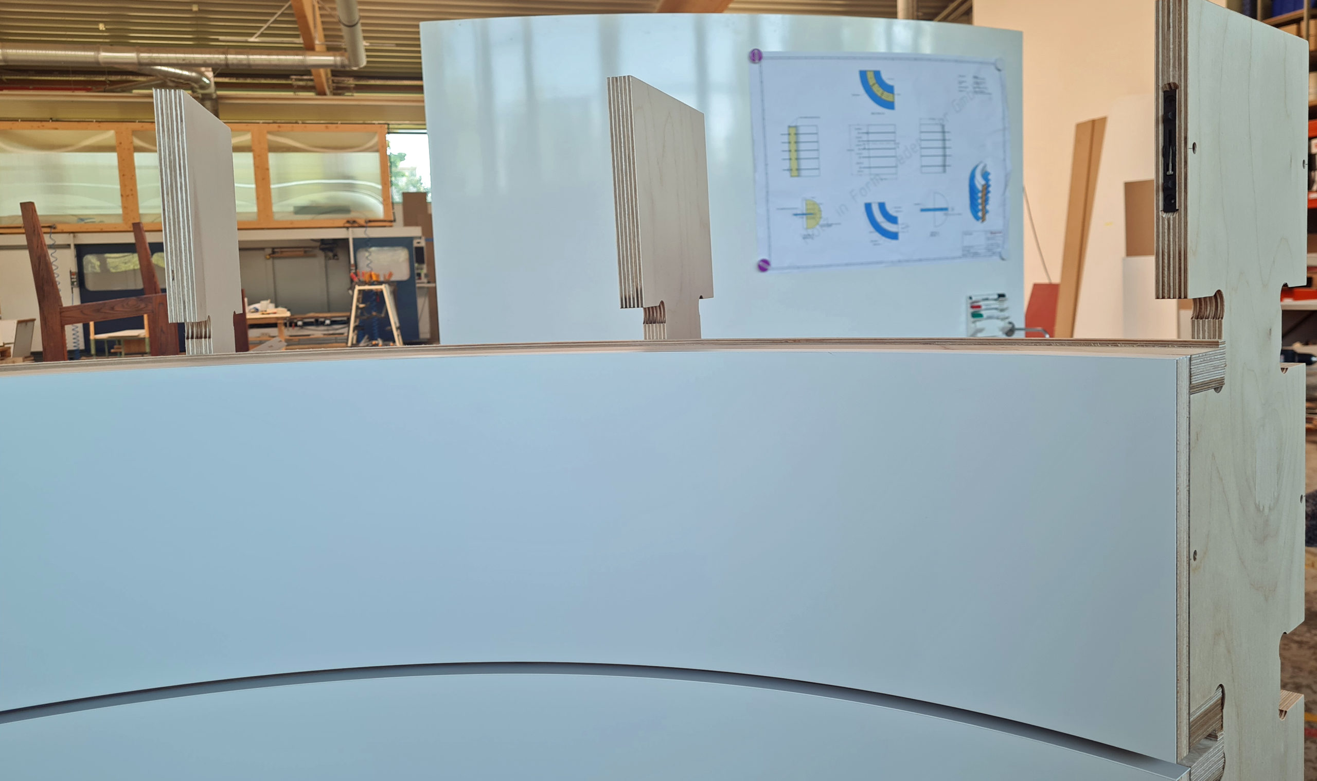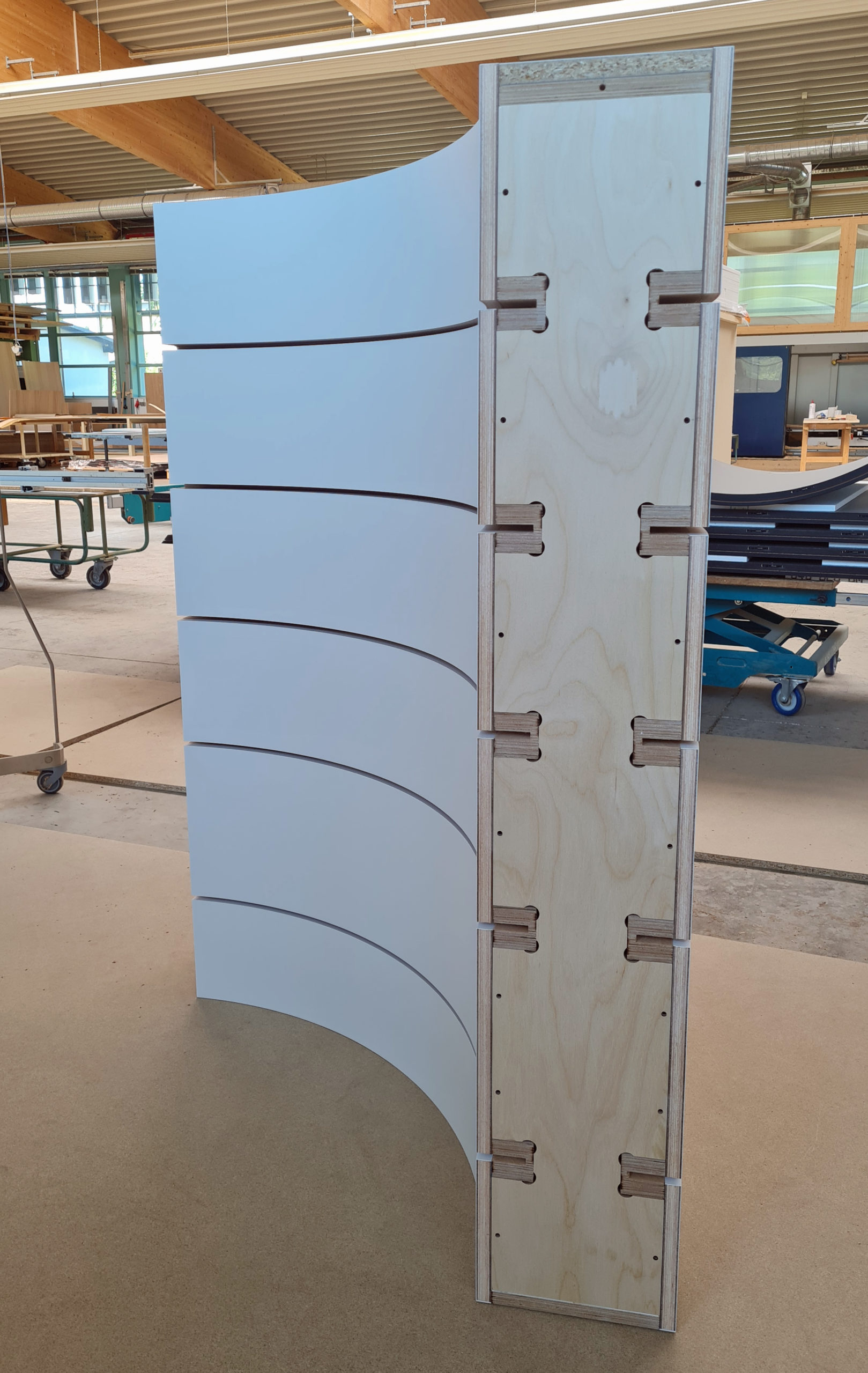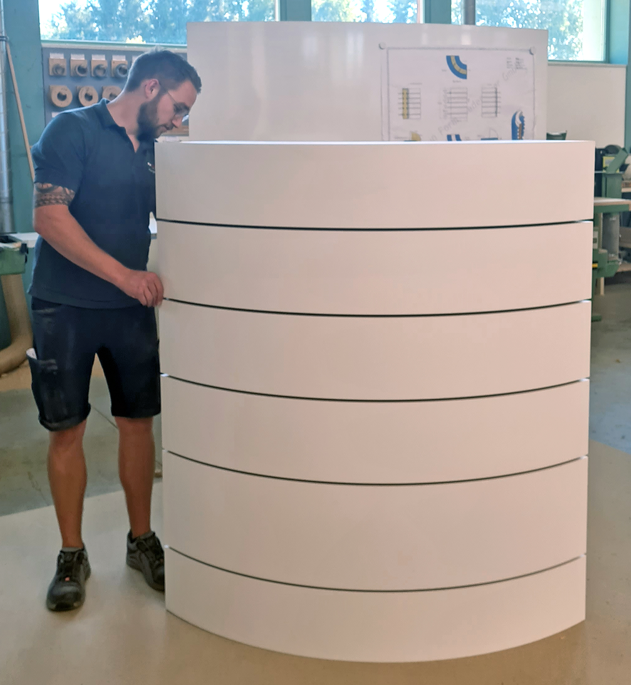 Wieder mal ein Blick in unsere Fertigung.Der freistehenden Warenpräsenter wurde nach Kundenwunsch soweit gefertigt, dass nur noch die Glasfächer eingeschoben werden müssen – und schon kann er dekoriert werden;