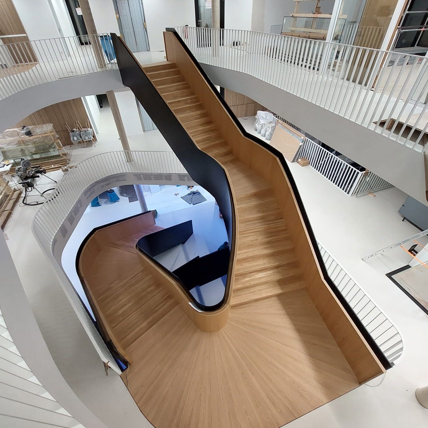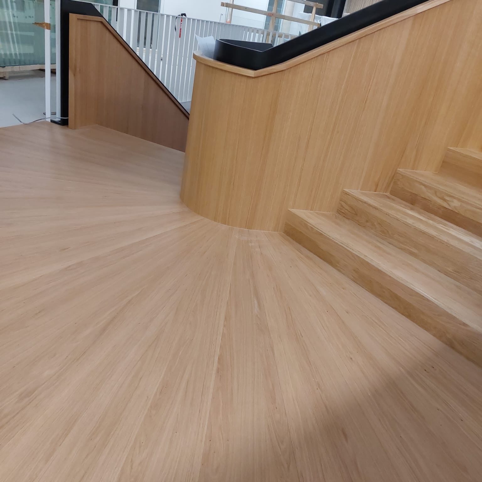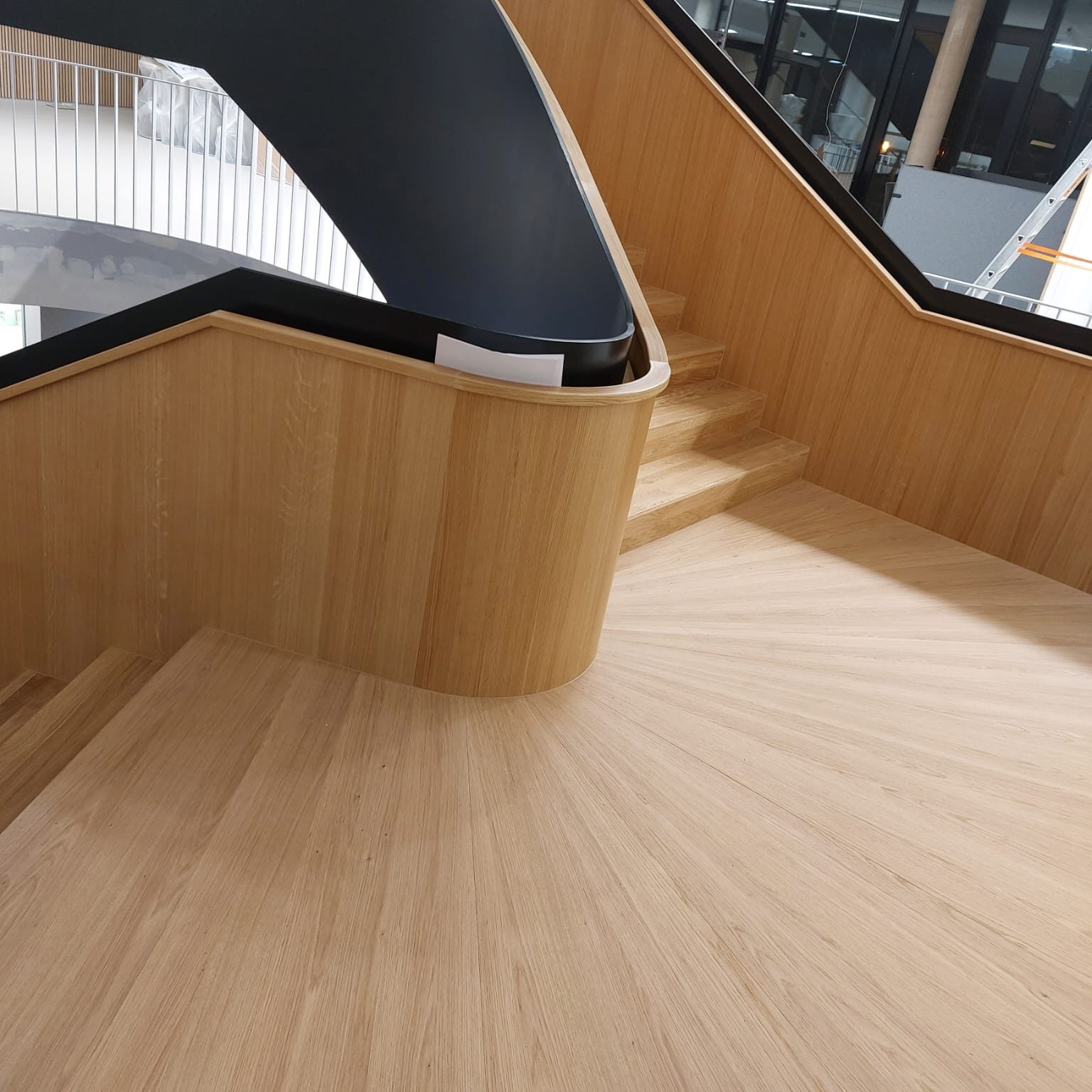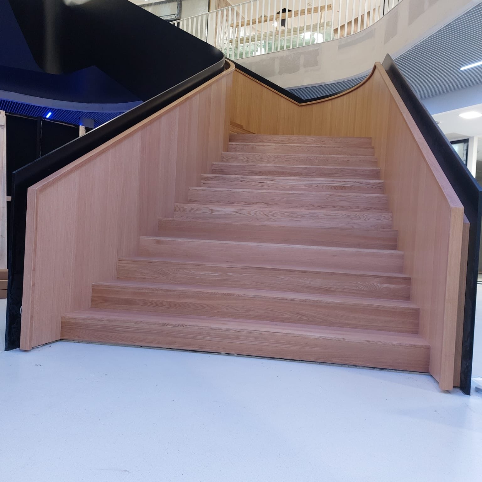 Für die Stadtwerke Willich konnten wir eine eindrucksvolle Treppen-Inszenierung umsetzen, die sicherlich ein sehenswertes und elegantes Highlight in Sachen Designer-Treppen aus Holz darstellt.