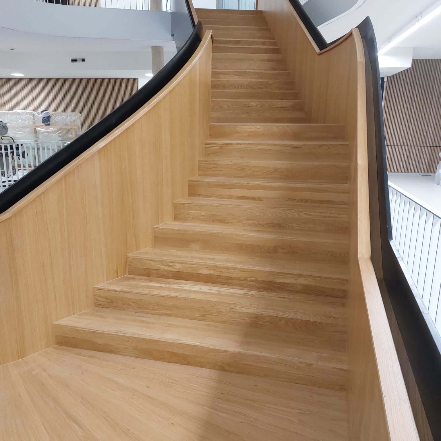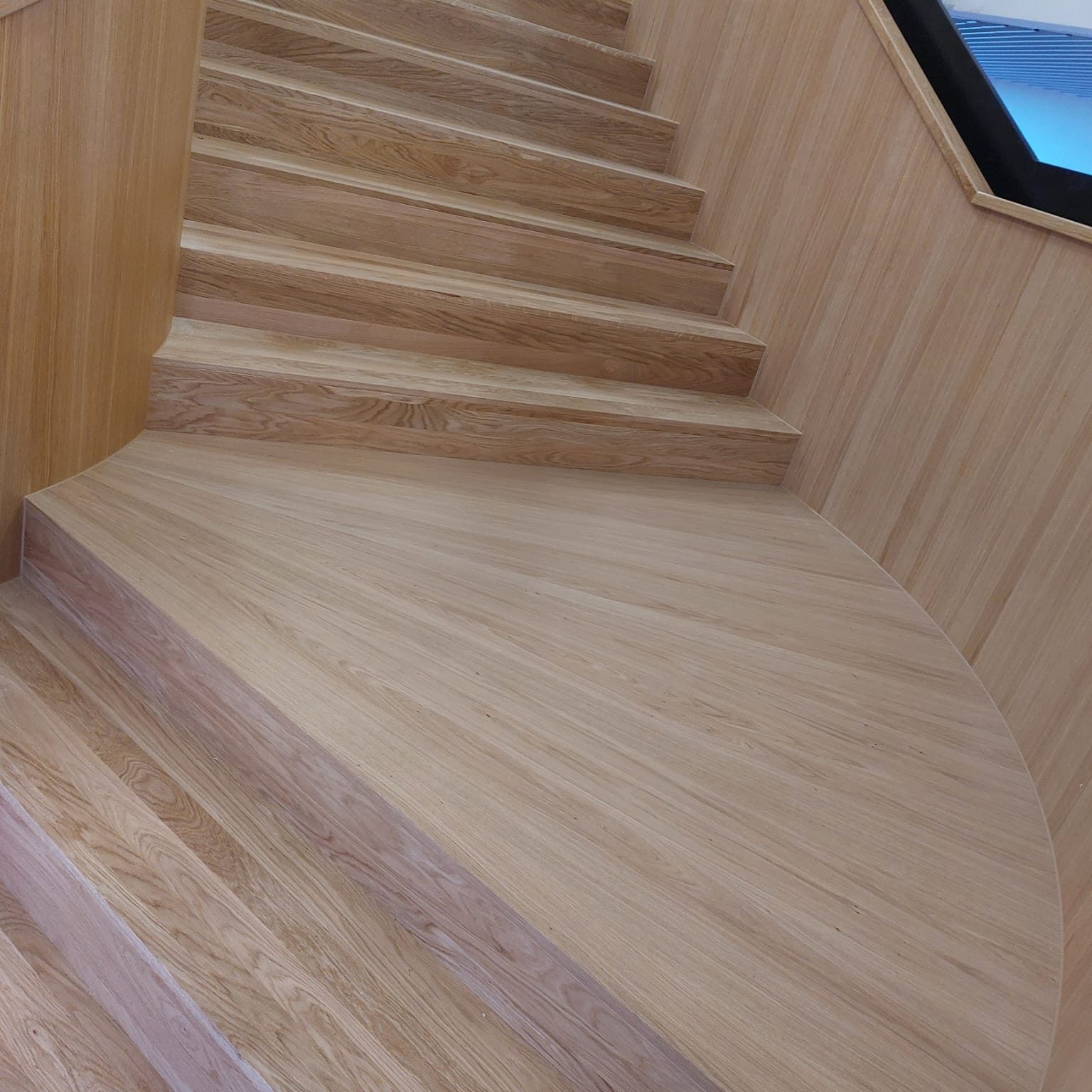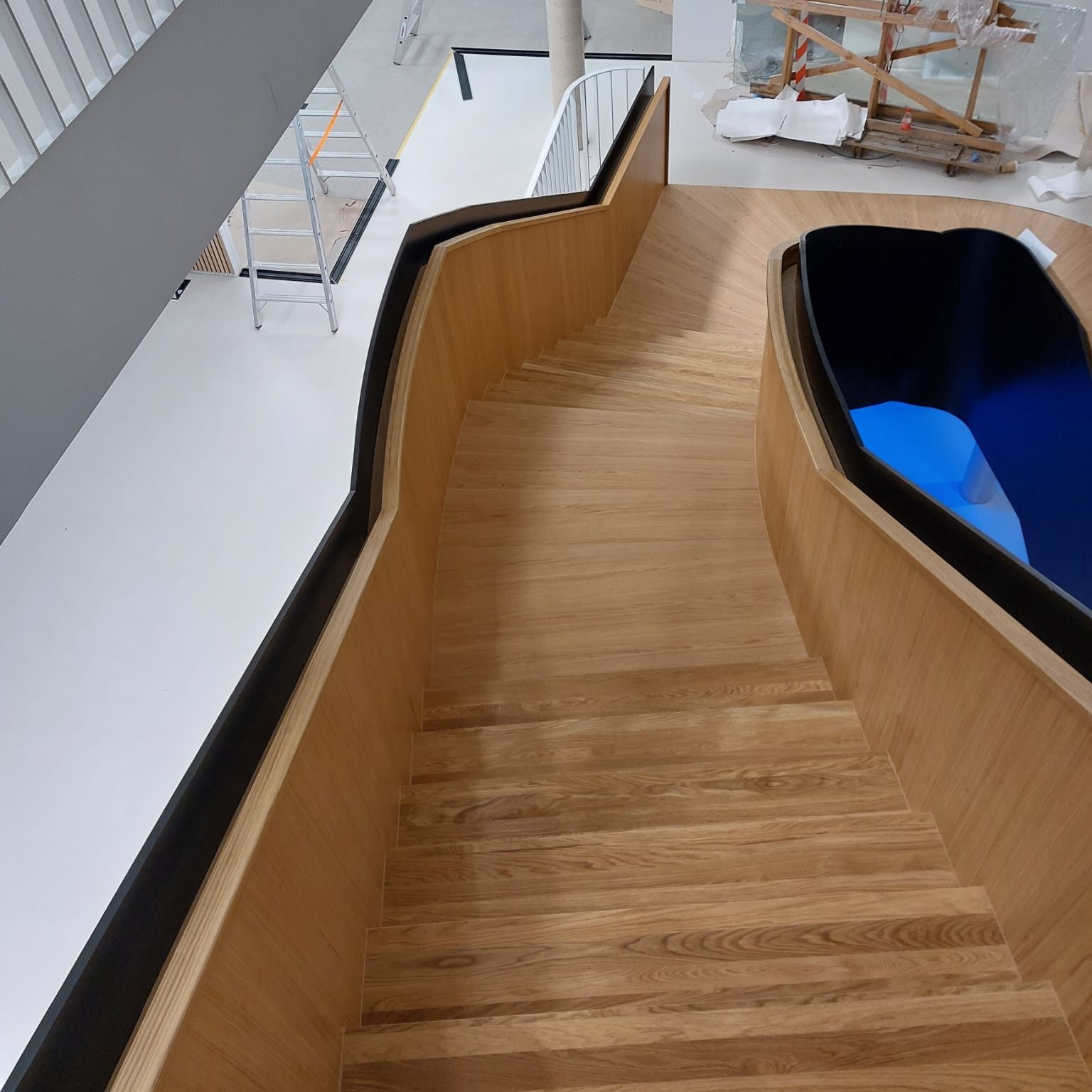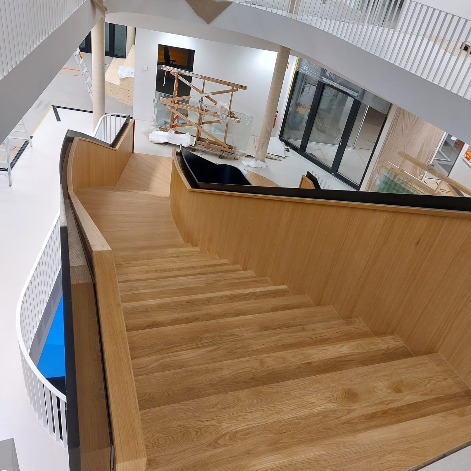 Für die Stadtwerke Willich konnten wir eine eindrucksvolle Treppen-Inszenierung umsetzen, die sicherlich ein sehenswertes und elegantes Highlight in Sachen Designer-Treppen aus Holz darstellt.